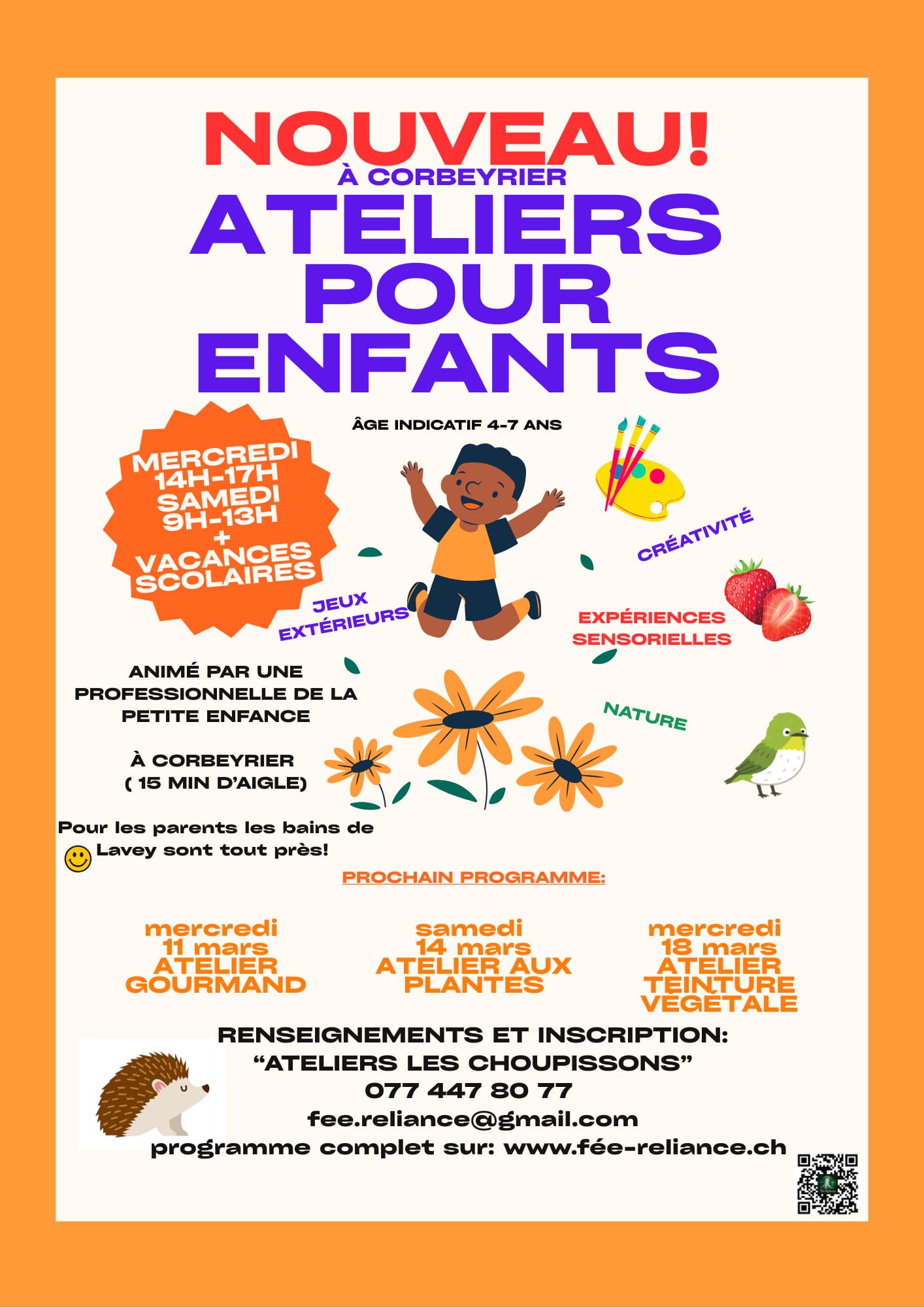 Bienvenue dans notre agenda, un véritable arc-en-ciel d’instants précieux. Chaque atelier, chaque séance est une couleur unique qui vient enrichir votre palette intérieure. Des soins pour le corps et l’âme, des explorations en nature et des moments enchantés pour les enfants : autant d'occasions de se reconnecter à soi, aux autres et à la Terre. Laissez-vous guider par ces nuances lumineuses, et suivez le fil de nos activités comme on suit un arc-en-ciel… jusqu'à retrouver un trésor de sérénité et de joie partagée.