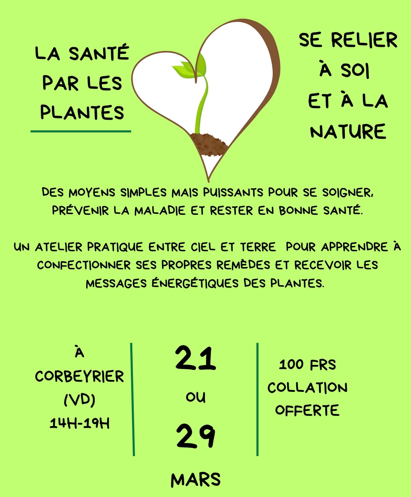 Prix: 100 CHF, collation offerte